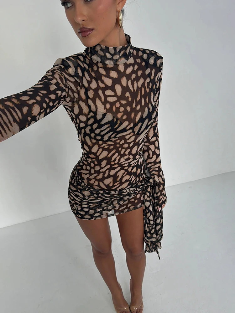 Unleash your wild side with this bold leopard print mini dress, designed to make a statement wherever you go. With a figure-hugging slim fit and a flattering A-line silhouette, it enhances your curves while keeping a stylish and confident edge.